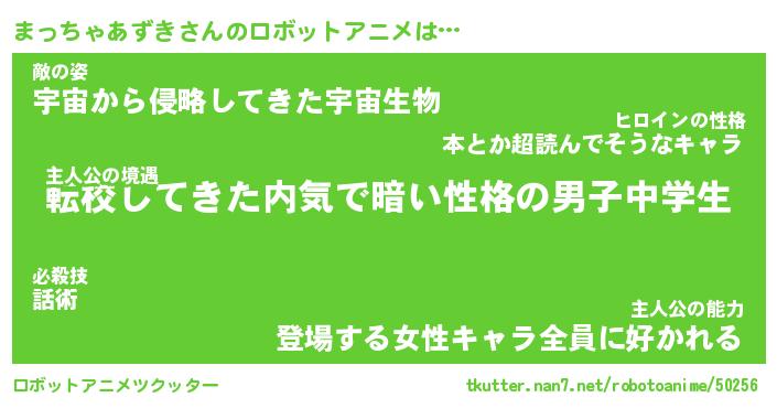 | 男性向けラノベタイトル風あだ名 | 『まっちゃあずきの憂鬱』 |