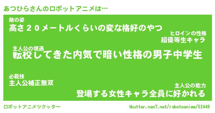 | 男性向けラノベタイトル風あだ名 | 『あつひらの憂鬱』 |