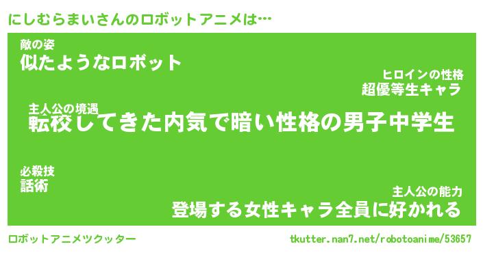 | 男性向けラノベタイトル風あだ名 | 『にしむらまいの憂鬱』 |