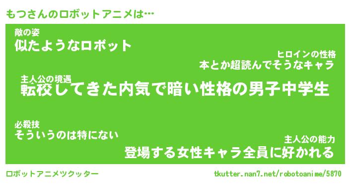 | 男性向けラノベタイトル風あだ名 | 『もつの憂鬱』『ノーゲーム・ノーモツ』 |