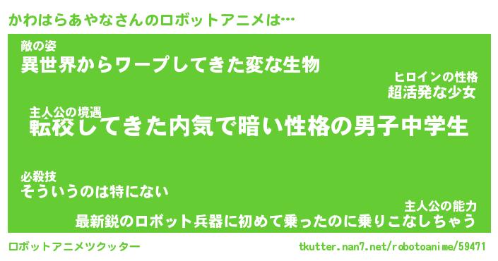| 伝説のあだ名 | 『伝説の傭兵かわはらあやな』 |