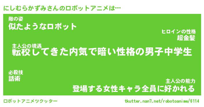 | 男性向けラノベタイトル風あだ名 | 『にしむらかずみの憂鬱』 |