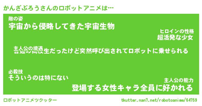 | ヒーロー風カッコイイあだ名 | 『スーパーカンザブロウ』『天弓騎士カン』 |