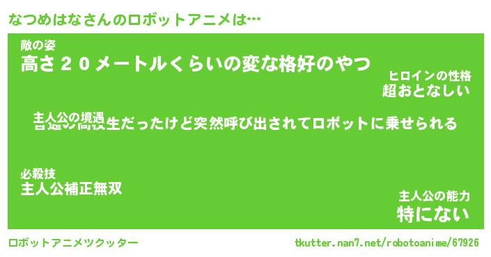 | 男性向けラノベタイトル風あだ名 | 『なつめはなの憂鬱』 |