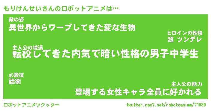 | 男性向けラノベタイトル風あだ名 | 『もりけんせいの憂鬱』 |