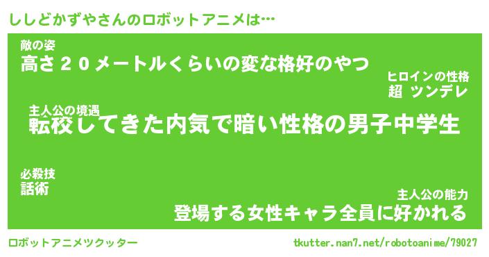 | 男性向けラノベタイトル風あだ名 | 『ししどかずやの憂鬱』 |