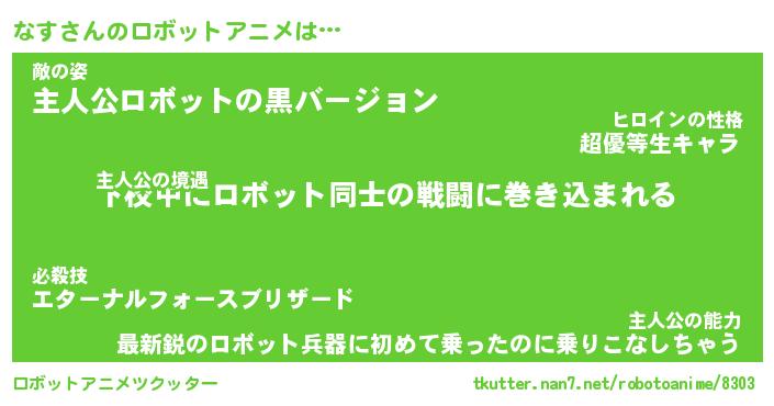 なすさんのロボットアニメは… 主人公の境遇『下校中にロボット同士の戦闘に巻き込まれる』敵の姿『主人公ロボットの黒バージョン』主人公の能力『最新鋭のロボット兵器に初めて乗ったのに乗りこなしちゃう』 ツクッター #ロボットアニメツクッター http://tkutter.nan7.net/robotoanime/8303/