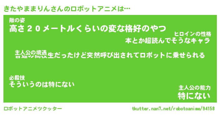 | 男性向けラノベタイトル風あだ名 | 『きたやままりんの憂鬱』 |