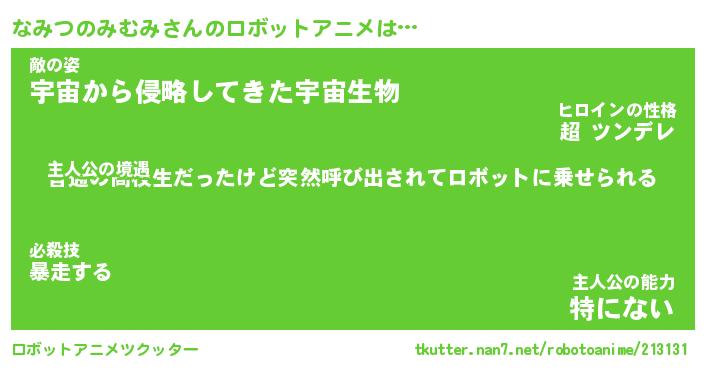 | 男性向けラノベタイトル風あだ名 | 『なみつのみむみの憂鬱』 |