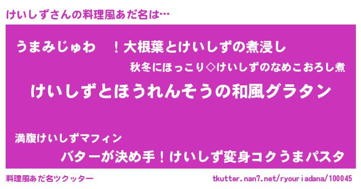 | ヘコむあだ名 | 『なまこ酢』『けいしず(笑)』 |