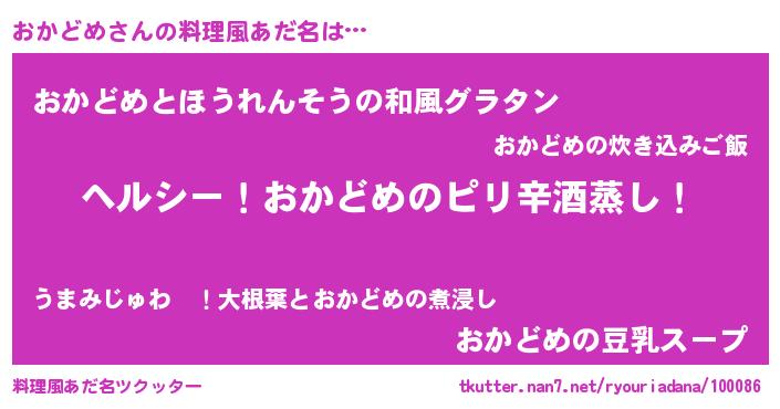 | 男性向けラノベタイトル風あだ名 | 『Re:おかどめから始める異世界生活』 |