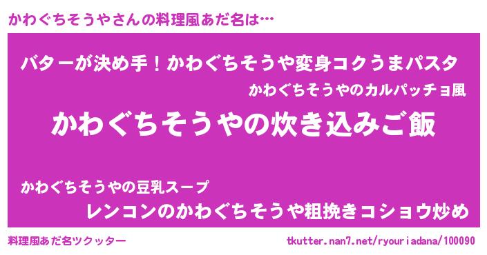 | 伝説のあだ名 | 『救世主となる錬金術士かわぐちそうや』 |