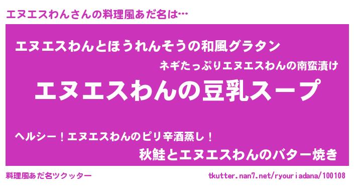 | 男性向けラノベタイトル風あだ名 | 『ダンジョンにエヌエスわんを求めるのは間違っているだろうか』 |