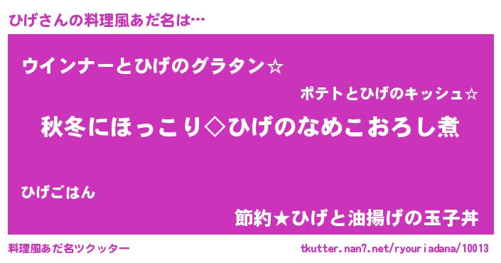 | ピコ太郎風あだ名 | 『ピヒ四郎』『ヒコ一郎』『ヒゲ次郎』 |