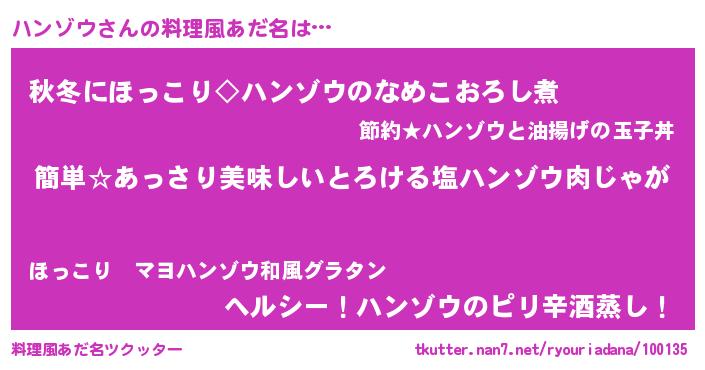| ヘコむあだ名 | 『ハンゾウ(笑)』『ハンもー』 |