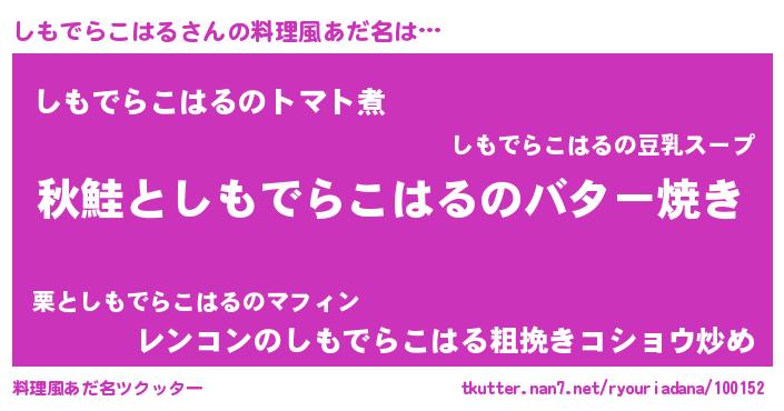 | 意味不明あだ名 | 『永久保存しもでらこはる』 |