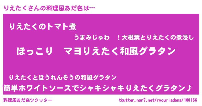 | ヒーロー風カッコイイあだ名 | 『仮面リエダー』『正義の使者りえたく』 |