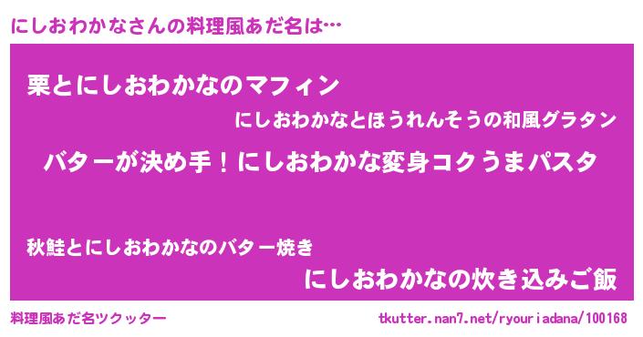 | ヘコむあだ名 | 『にしおわかな(遠い目)』『にしを』 |