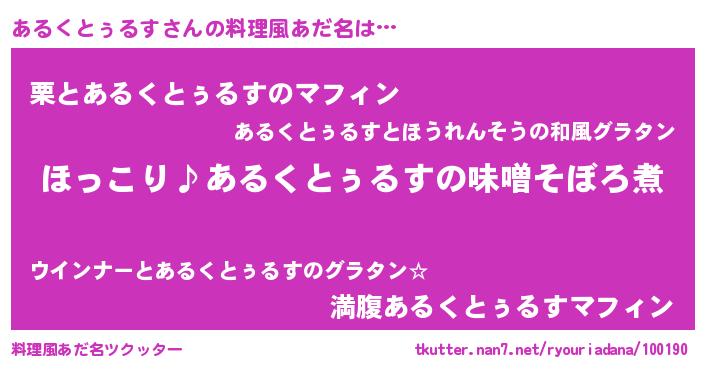 | ヘコむあだ名 | 『あるにー』『あるくとぅるす(笑)』 |