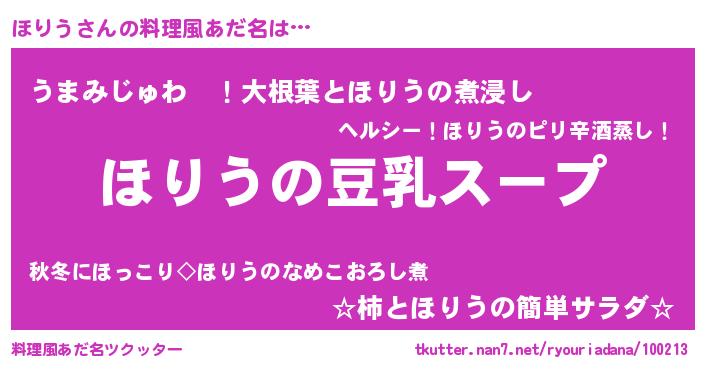 | 胡散臭い通販商品みたいなあだ名 | 『信頼と実績のサプリメント…その名も「ほりう」』 |