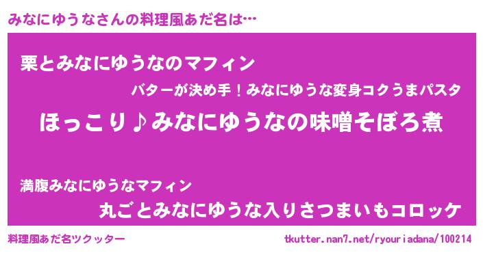 | ヘコむあだ名 | 『みなにゅー』『みなにゆうな(爆)』 |