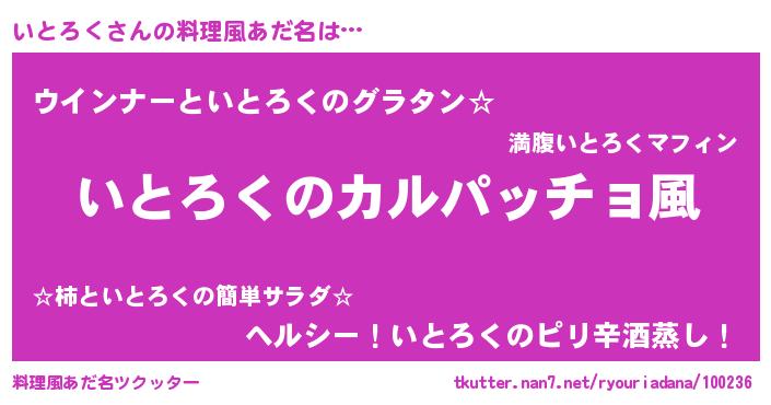 | 意味不明あだ名 | 『住所不定無職いとろく(53歳)』 |