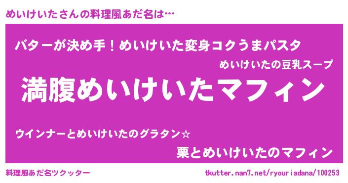 | ヘコむあだ名 | 『めいけいた(小並感)』『めいぷりん』 |