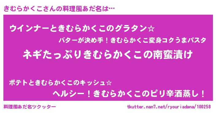| ヘコむあだ名 | 『きむもー』『なまこ酢』『きむお』 |