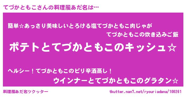| 女子向けラノベタイトル風あだ名 | 『てづかともこの卵を拾いまして』 |