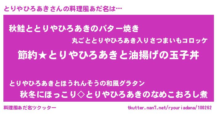 | ヒーロー風カッコイイあだ名 | 『スーパートリヤヒロアキ』 |