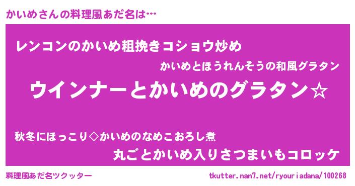 | 2回繰り返すあだ名 | 『かかいい』『めらめら』『かいかい』 |