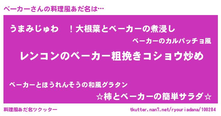 | 女子向けラノベタイトル風あだ名 | 『ベーカーなんてお断りですっ。』 |