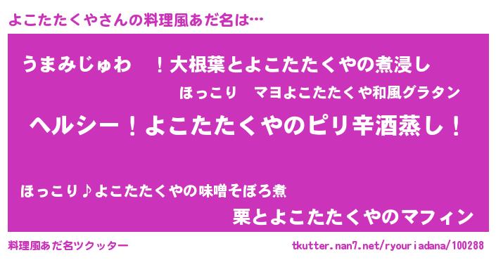 | 胡散臭い通販商品みたいなあだ名 | 『テレビで話題の高麗人参…その名も「よこたたくや」』 |