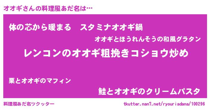 | 胡散臭い通販商品みたいなあだ名 | 『ガンによく効く冬虫夏草…その名も「オオギ」』 |