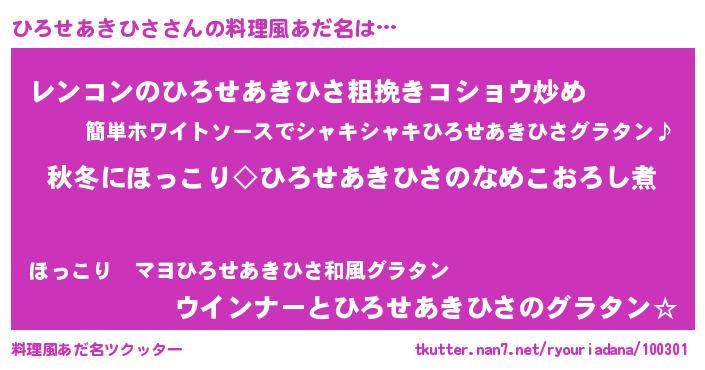 | 胡散臭い通販商品みたいなあだ名 | 『芸能人もオススメするアガリクス…その名も「ひろせあきひさ」』 |