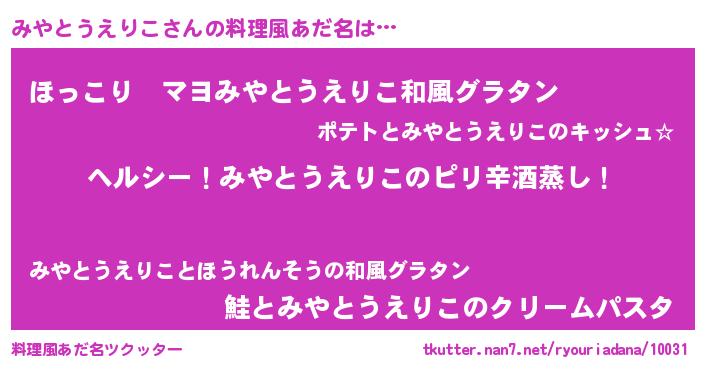 | ヘコむあだ名 | 『みやお』『みやとうえりこ(震え声)』 |