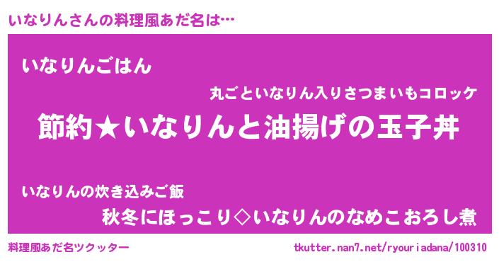 | 胡散臭い通販商品みたいなあだ名 | 『モテモテ間違いなし水晶球…その名も「いなりん」』 |
