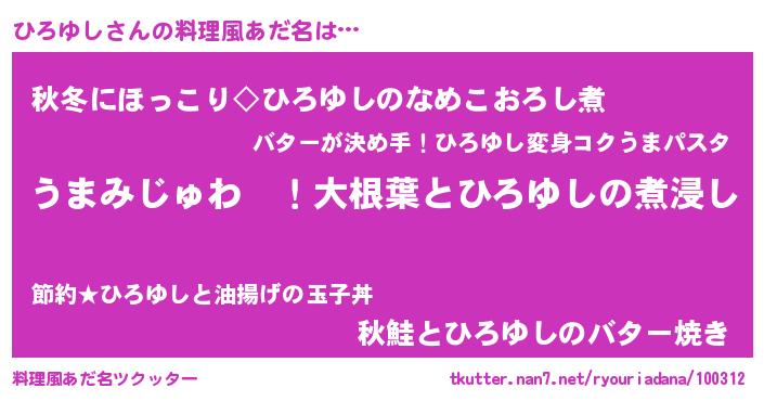 | ヘコむあだ名 | 『酢こんぶ』『ひろゆし(遠い目)』 |