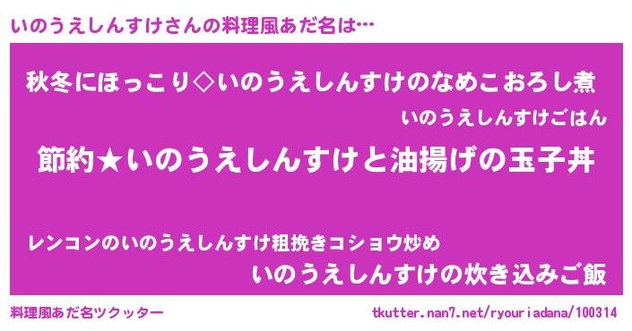 | 女子向けラノベタイトル風あだ名 | 『いのうえしんすけ姫と円卓の騎士』 |