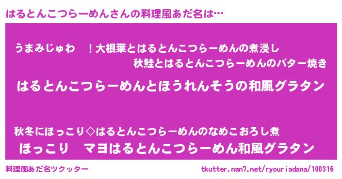 | ヒーロー風カッコイイあだ名 | 『ウルトラはるとんこつらーめんマン』 |