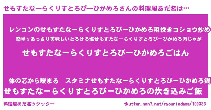 | 肩書あだ名 | 『せもすたなーらくりすとろびーひかめろ少将』 |