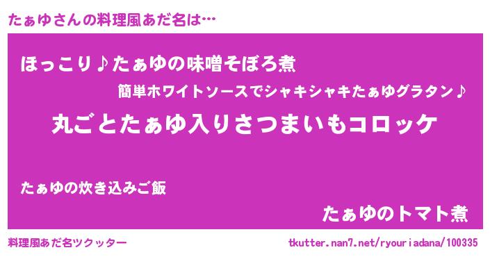 | 男性向けラノベタイトル風あだ名 | 『この素晴らしい世界にたぁゆを!』 |