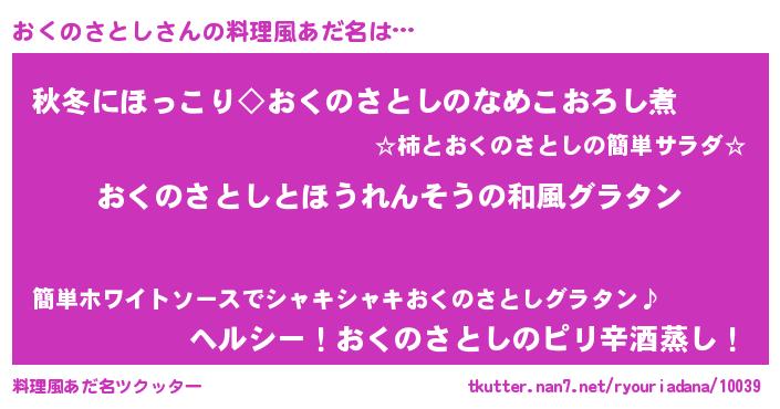 | 女子向けラノベタイトル風あだ名 | 『おくのさとしの玉の輿計画!』 |