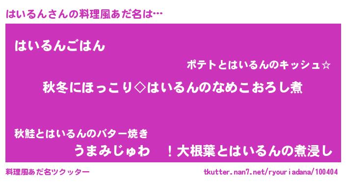 | 男性向けラノベタイトル風あだ名 | 『はいるんに滅ぼされるだけの簡単なお仕事です』 |