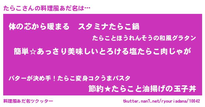 | ヒーロー風カッコイイあだ名 | 『ネオタラコ』『ウルトラたらこマン』 |