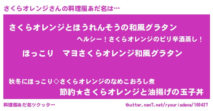 | 女子向けラノベタイトル風あだ名 | 『悪役さくらオレンジに転生したようですが、知った事ではありません』 |