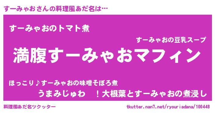 女子向けラノベタイトル風あだ名 | 『異世界で失敗しない100のすーみゃお』 |