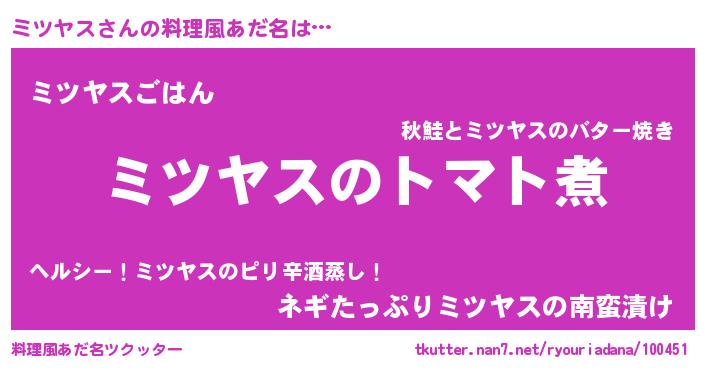 | 男性向けラノベタイトル風あだ名 | 『おまえをオタクにしてやるから、俺をミツヤスにしてくれ! 』 |