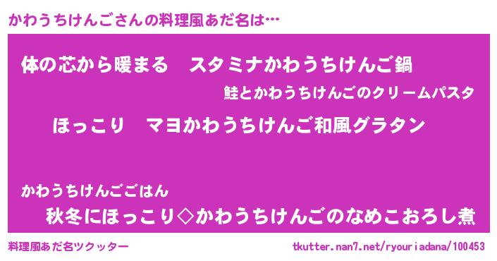 | 意味不明あだ名 | 『住所不定無職かわうちけんご(71歳)』 |