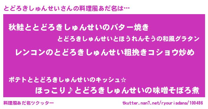 | 胡散臭い通販商品みたいなあだ名 | 『ガンによく効く高麗人参…その名も「とどろきしゅんせい」』 |